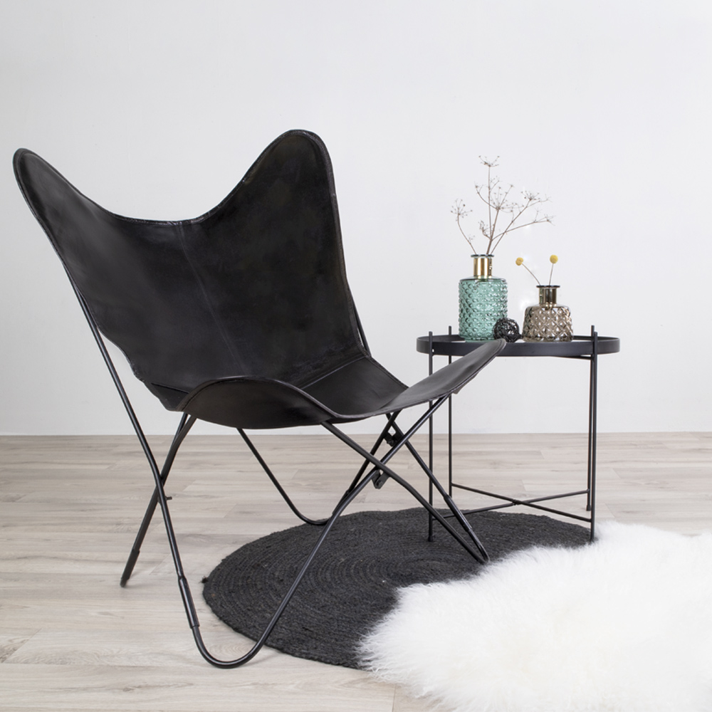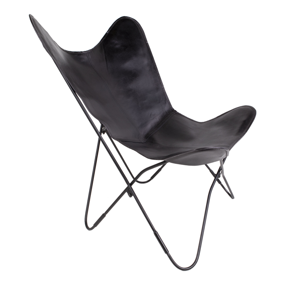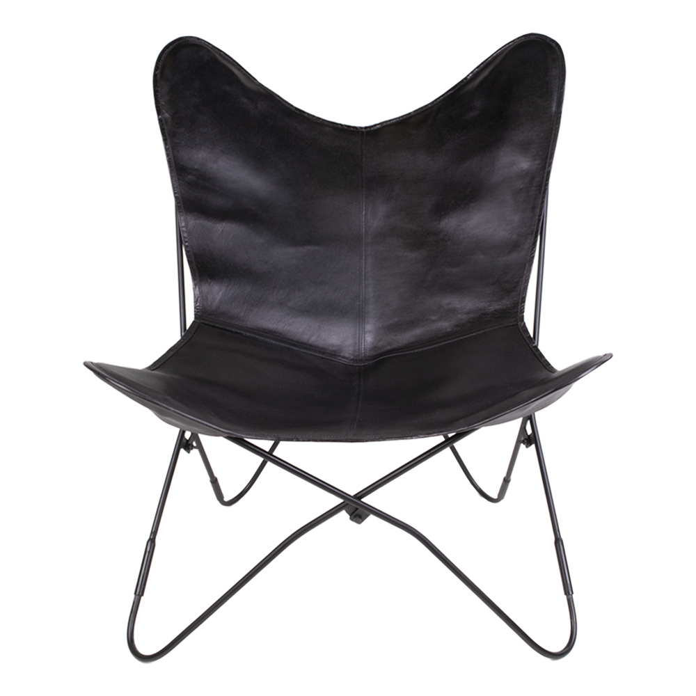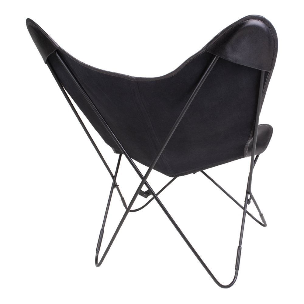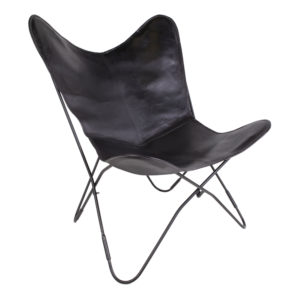 Flagermus lænestol i sort læder, en enkelt og let lænestol i sort læder og metal stel. Stolen som kan bruges alle steder, entre, soveværelset, værelset, eller som en ekstra stol i stuen.