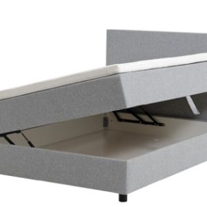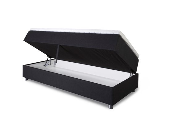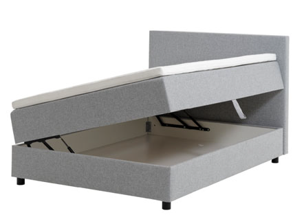 Flygel seng med magasin til opbevaring. Sengen åbner