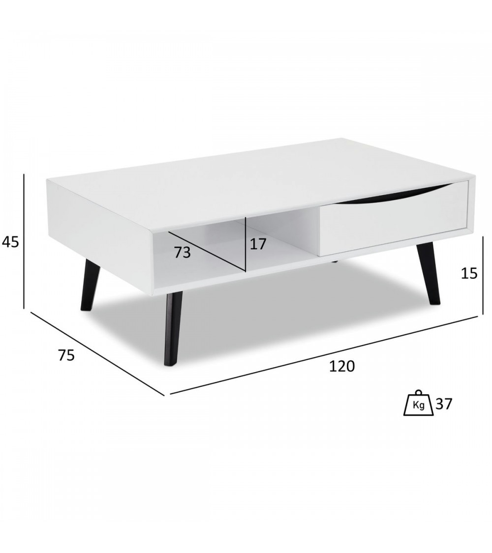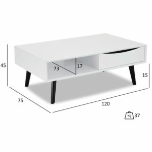 Vi introducerer Lyon sofabordet, en slank og stilfuld tilføjelse til enhver stue. Dette bord er lavet af et slidstærkt MDF-stel og afsluttet med slidstærkt melamin. Den rektangulære form og sorte træben skaber et moderne look, der komplementerer ethvert interiørdesign. Lyon sofabordet er 75 cm bredt, 120 cm dybt og bordpladen er 2 cm tyk, så det giver masser af plads til drinks, bøger mm.
