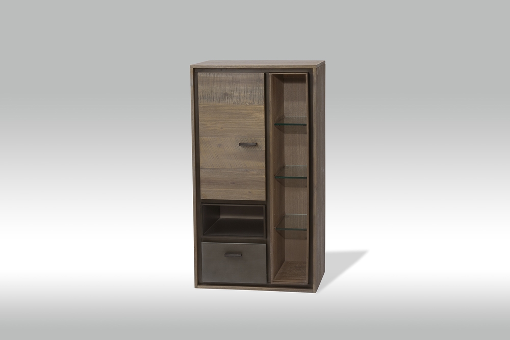 Malaga vitrineskab er i acacia træ, en brun og lidt sølvfarvet overflade som giver et helt speciel udseende. Her der tale om et skab med masse af muligheder, uanset om man har brug for opbevaring, eller et skab der bare skal pynte i stuen.