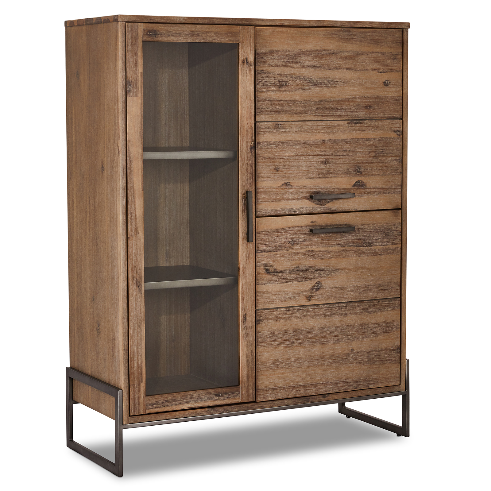 En flot højskænk i det lækkere acacia træ, 1 låge i glas og 2 i træ