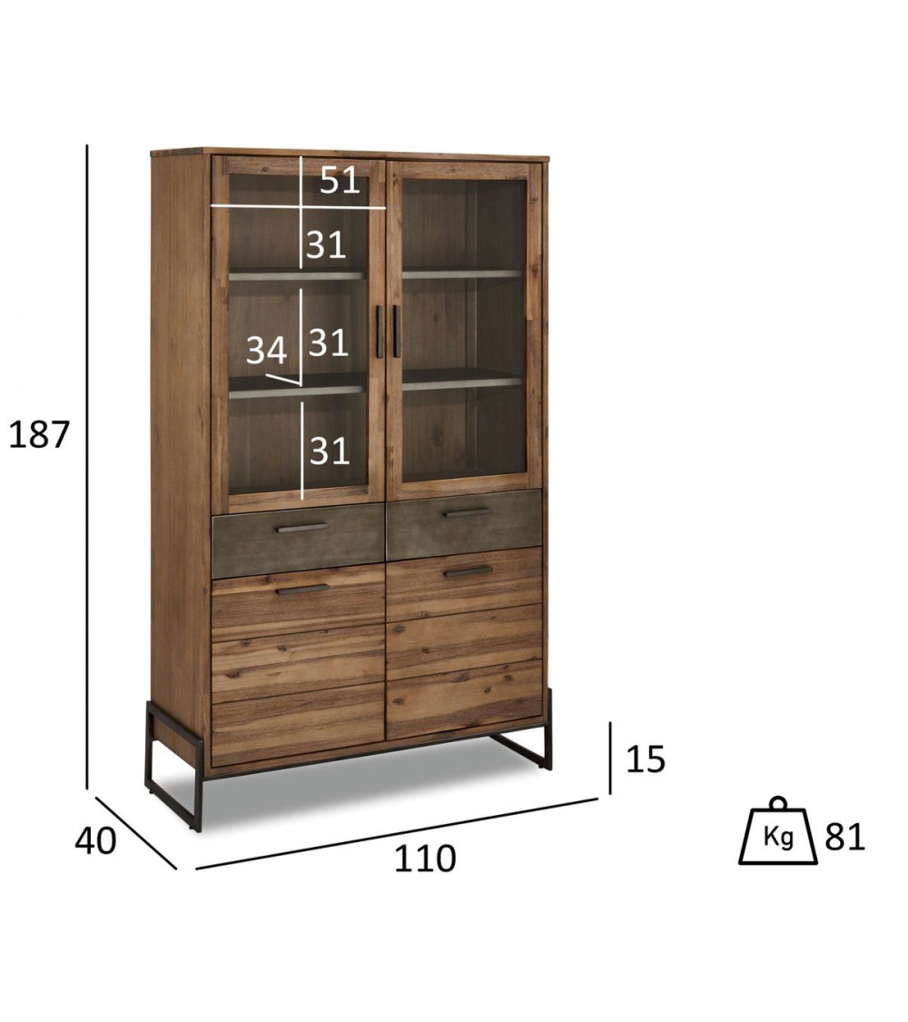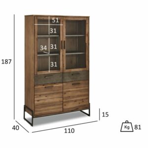 Et flot Vitrineskab med 2 skuffer, 2 glas låger og 2 låger