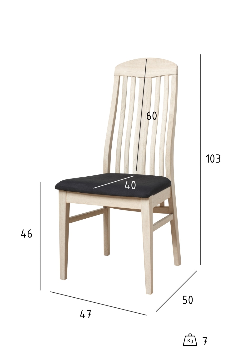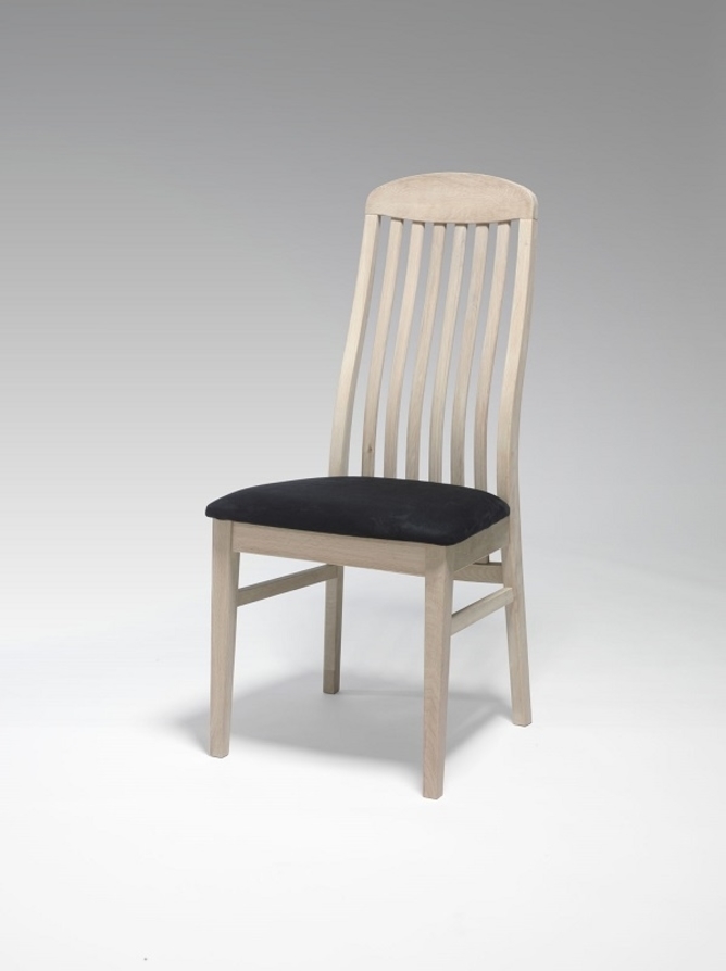 Alt fra top til tå er massivt egetræ høj ryg, sædet er velpolstret med et tæt-vævet betræk,